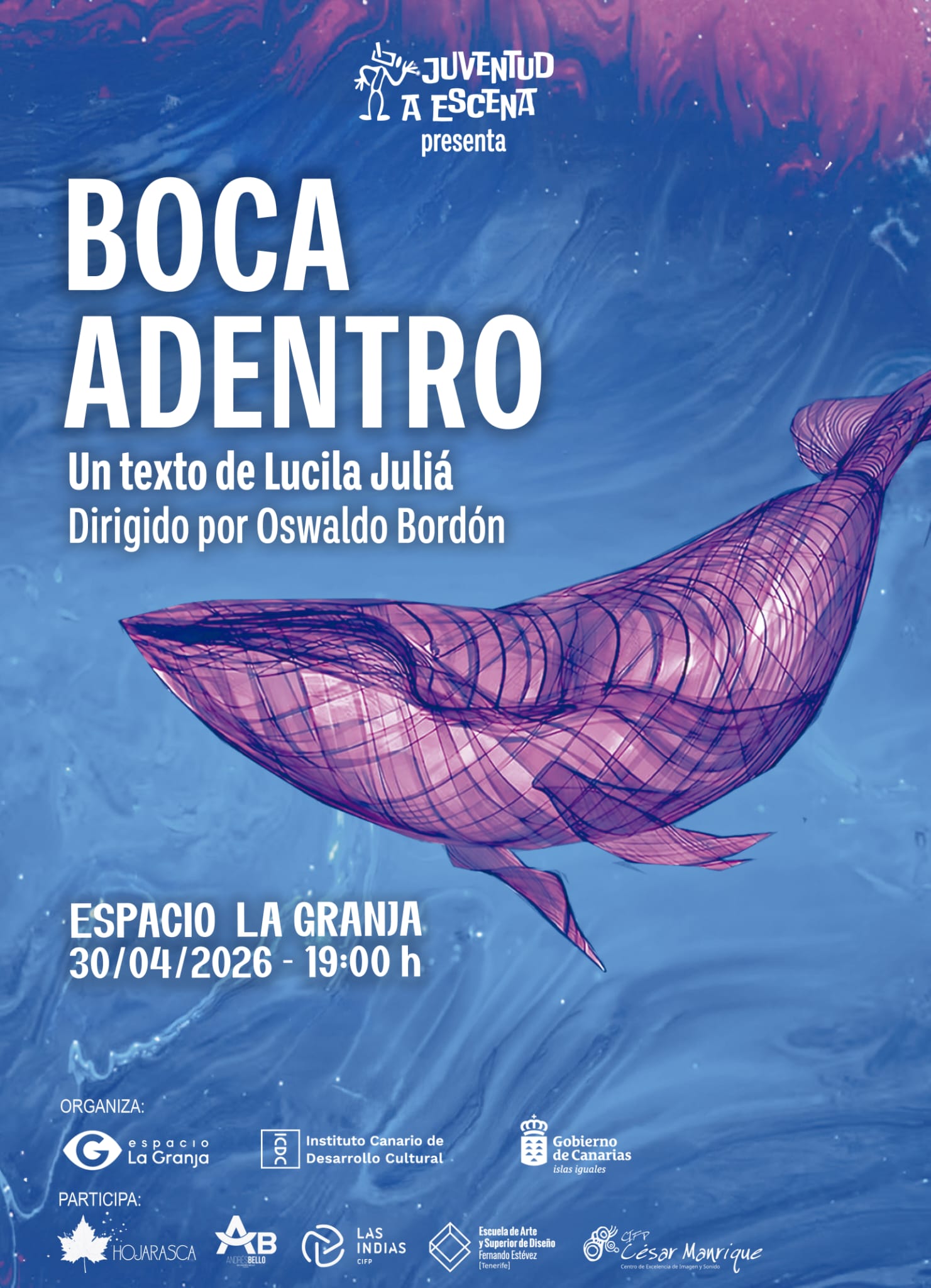 El Espacio La Granja presenta la nueva pieza teatral creada por adolescentes en el marco de la segunda edición de Juventud a Escena, un proyecto dirigido a acercar a la juventud al teatro. ‘Boca adentro’, es el resultado del trabajo realizado dentro de su Laboratorio de Creación Escénica, con la participación de más de 70 estudiantes de distintas disciplinas y centros de la isla de Tenerife. Un texto de Lucila Juliá, inspirado en ‘La tempestad’ de Shakespeare y dirigido por Oswaldo Bordón.